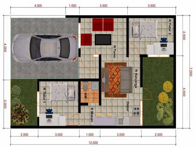 Berikut adalah beberapa denah rumah tipe 45 dengan detail ukuran ruangan untuk Sobat Tren Rumah: